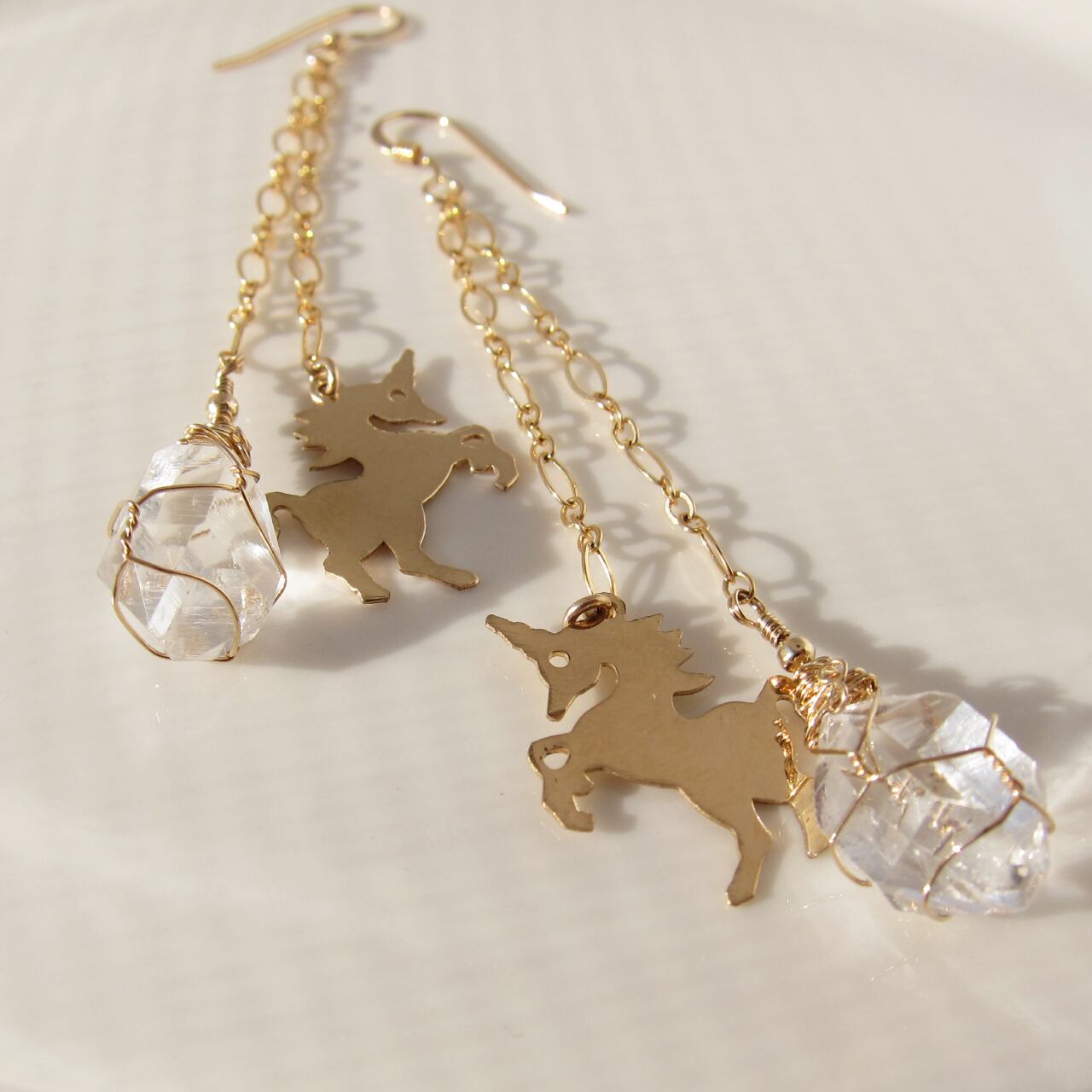 素材:ハーキマーダイヤモンド(4ct) × 2個、14KGFワイヤー、14KGFユニコーンチャーム