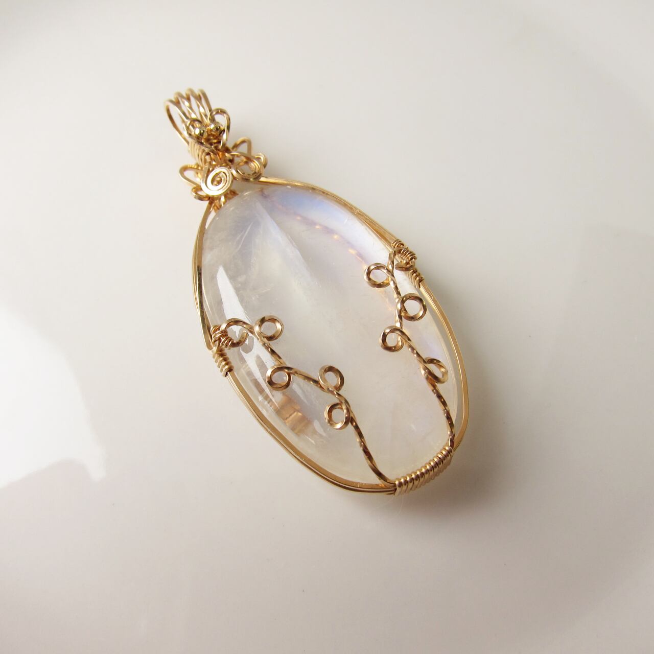 ブルームーンストーンのペンダントトップです。透明感が高く、青く輝くシラーが全体的に見られる美しいブルームーンストーンです。