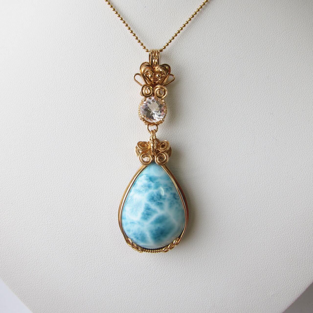 フェナカイト(マダガスカル・2.73ct)とラリマーの2連ペンダントトップです。